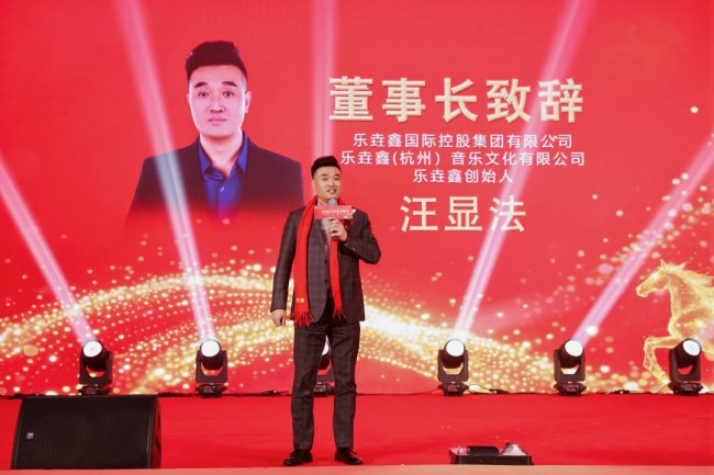随后,乐垚鑫(杭州)音乐文化有限公司董事长汪显法上台致辞。董事长的话语沉稳而有力量,既肯定了过去一年公司取得的丰硕成果,也深刻阐释了公司的发展理念与核心价值。他强调,公司的成长离不开每一位同仁的坚守与付出,更离不开各界朋友的鼎力支持,未来,公司将以更坚定的信念、更务实的作风、更昂扬的姿态,攻坚克难、勇毅前行,不负信赖、不负韶华。董事长的致辞,让在场每一位人都备受鼓舞、倍感振奋。