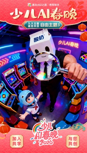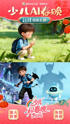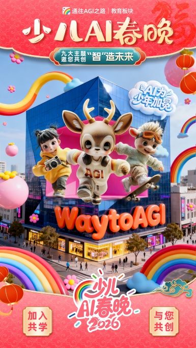 2月15日(农历腊月二十八)晚8:00,首届少儿AI春晚将在“通往AGI之路”和“WaytoAGI-EDU”微信视频号正式首播。 欢迎广大观众锁定直播间,当这150余份由好奇心驱动的共创作品点亮屏幕时,还有上百份精美礼品掉落!让我们共同见证这群“未来架构师”创造的数字奇迹!