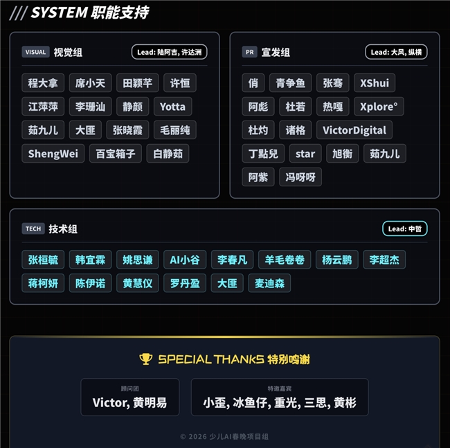 这场横跨40城的晚会背后,是一场跨越代际的深度连接。当这150多名6岁到16岁的AI小创作者们带着被好奇心点燃的想法,遇上由家长与200多名志愿者组成的特殊“护航团”时,奇妙的化学反应发生了。特别值得一提的是,志愿者队伍中活跃着大量高校大学生的身影。这些充满活力的“青年力量”以“大哥哥大姐姐”的身份反哺少年,将课堂所学转化为实践,在不同的项目组中发挥着自己的能力。而家长们也一改往日的单向督促,变成了与孩子并肩作战的“共创者”。青年的专业指导、家长的温情陪伴与孩子们的纯真创意,在这里碰撞出了绚丽的共创火花,成就了一段协同育人的佳话。